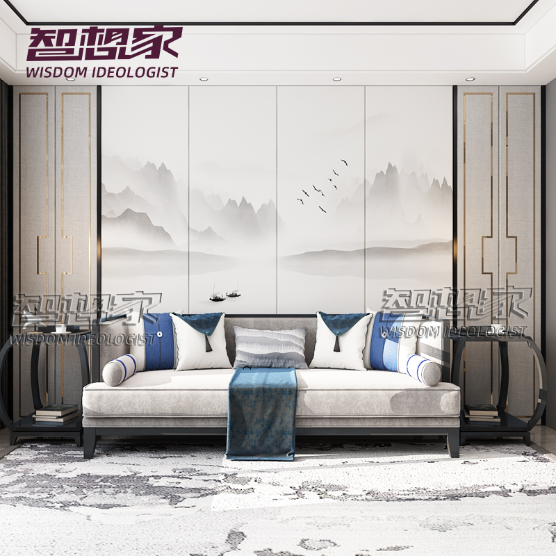 新中式风格软包硬包背景墙卧室简约现代客厅影视电视环保墙面定制热门设计联盟服务商