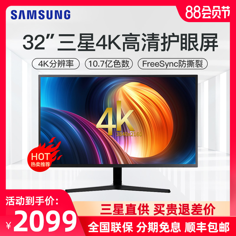 三星32英寸4K高清电脑显示器U32J592UQC超清专业设计绘图可壁挂液晶台式31.5显示屏2K屏幕PS4电竞144HZ游戏27热门设计联盟服务商
