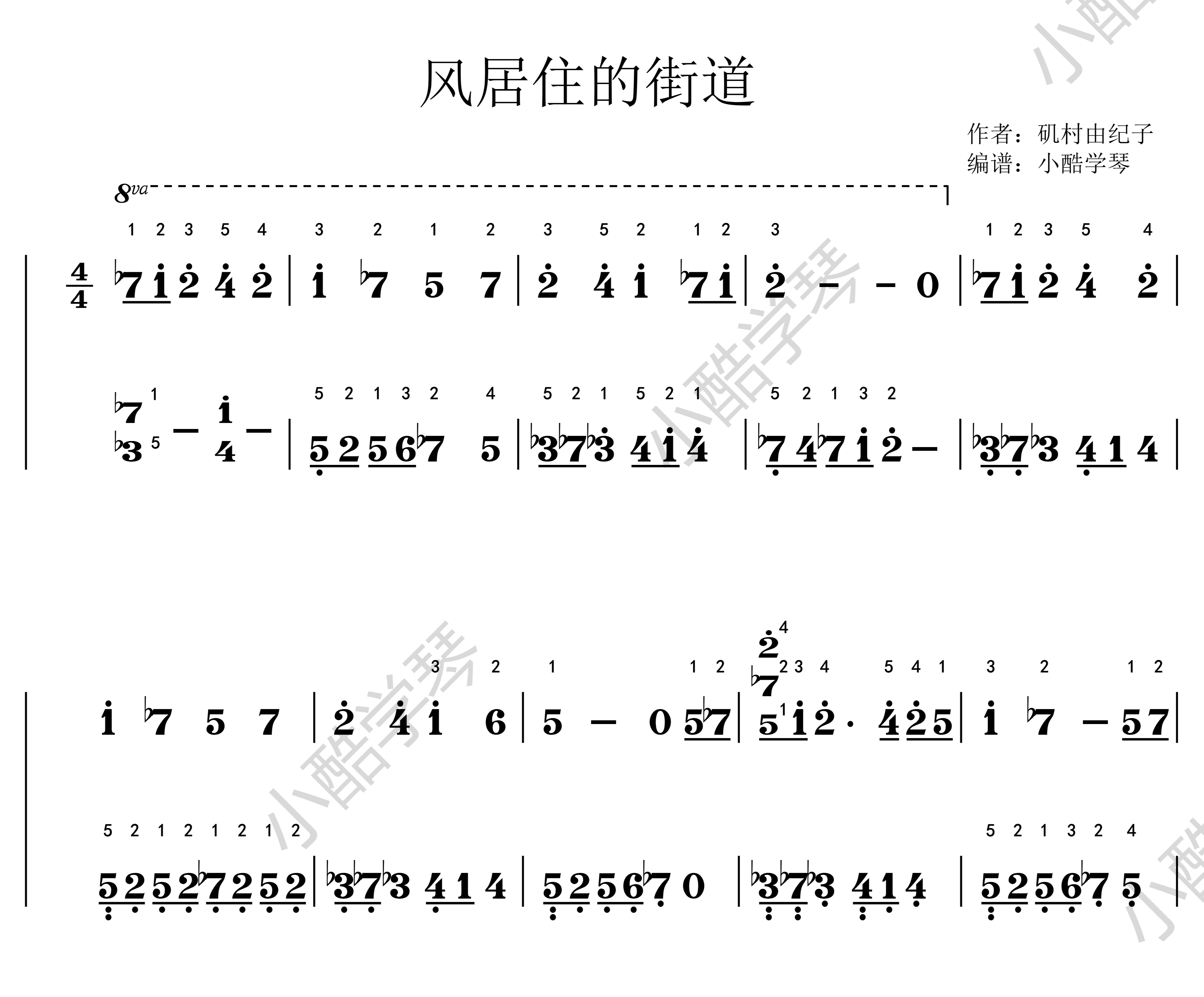 风居住的街道电子版PDF完整简谱+五线谱(带指法)记得留邮箱热门设计联盟服务商