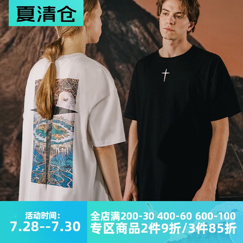 GRKC彩色希腊地图短袖男潮牌ins国潮嘻哈宽松潮牌t恤女夏季设计感热门设计联盟服务商