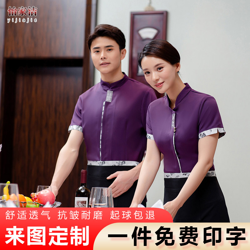 星级酒店中餐厅工作服特色餐饮短袖酒馆服务员迎宾前台高端女制服热门设计联盟服务商