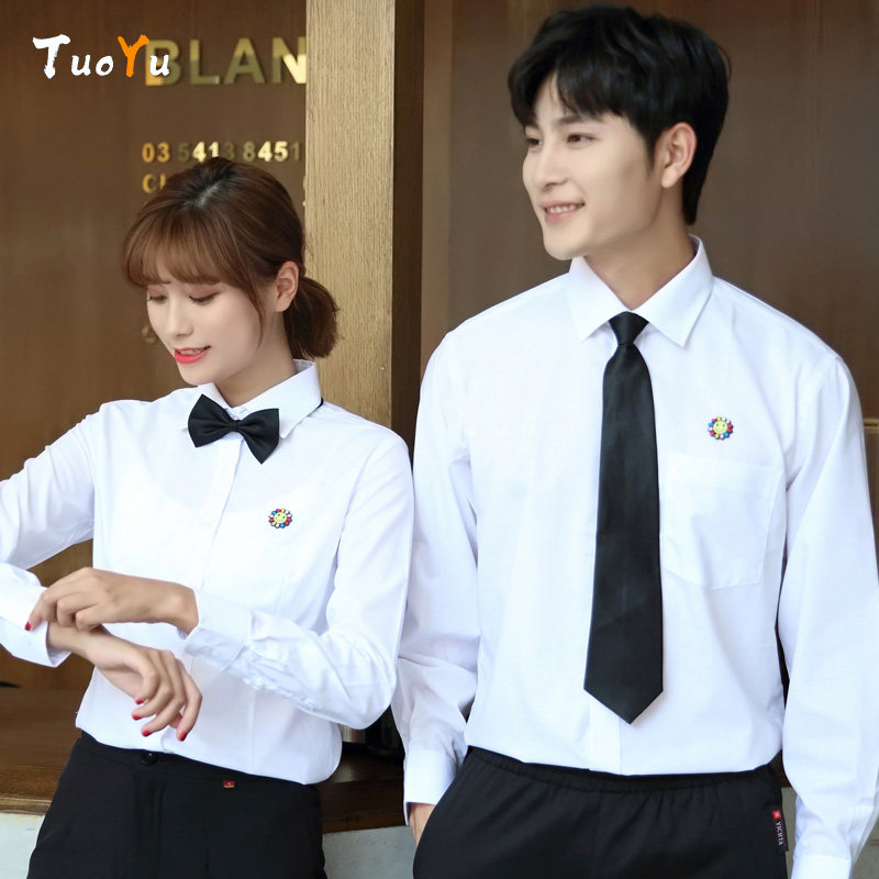 定制LOGO绣花印字职业男女商务白衬衣工装奶茶店服务员工作服定做热门设计联盟服务商