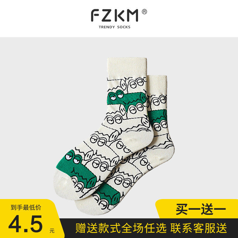 卡通绿色鳄鱼可爱动物韩版学院风百搭滑板袜男女中筒袜子热门设计联盟服务商
