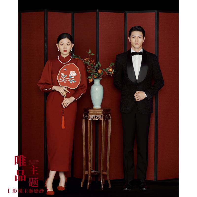 影楼拍照主题婚纱摄影服装红色民国风法式复古时尚中式旗袍礼服裙热门设计联盟服务商