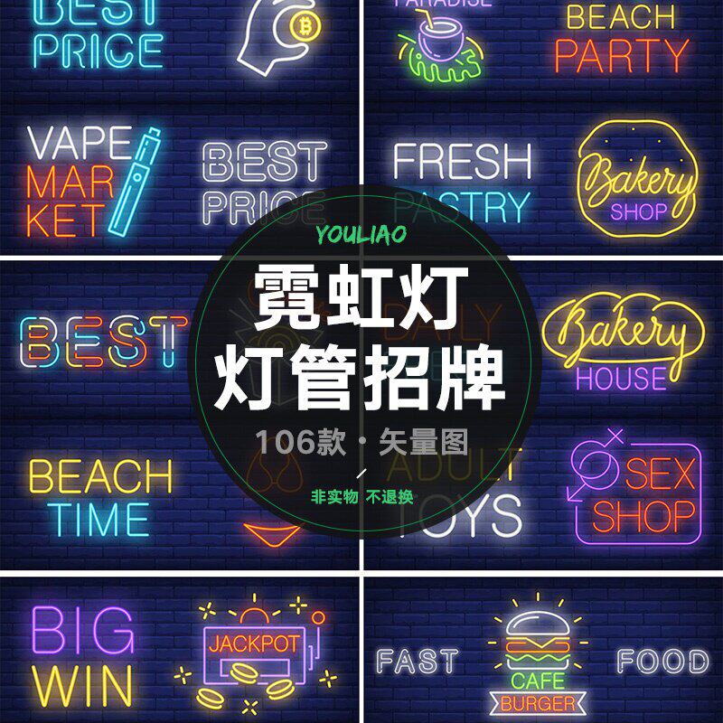 霓虹灯荧光灯招牌指示牌边框灯光效果AI矢量设计素材源文件S177热门设计联盟服务商