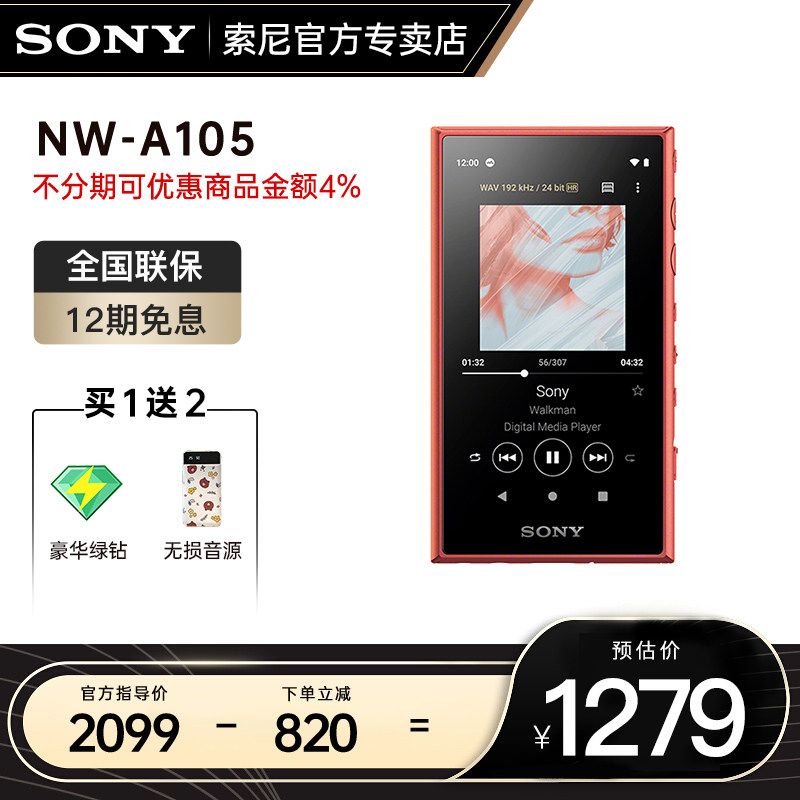 Sony/索尼 NW-A105 安卓MP3 便携蓝牙 音乐播放器 hifi无损随身听热门设计联盟服务商