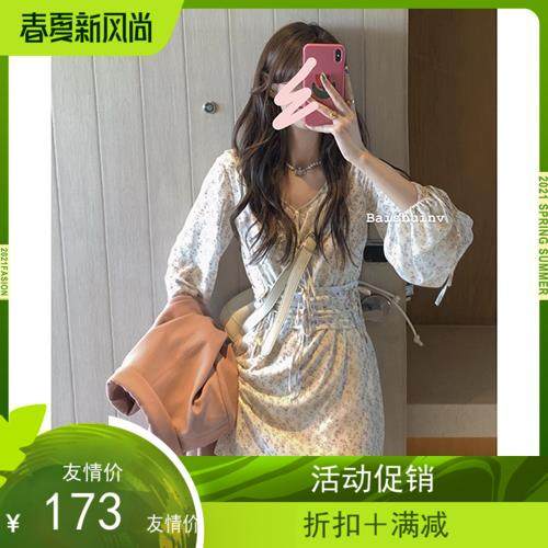 白水涤纶其他女女春秋季新款温柔风C设计感小众收腰长袖V领初恋裙热门设计联盟服务商