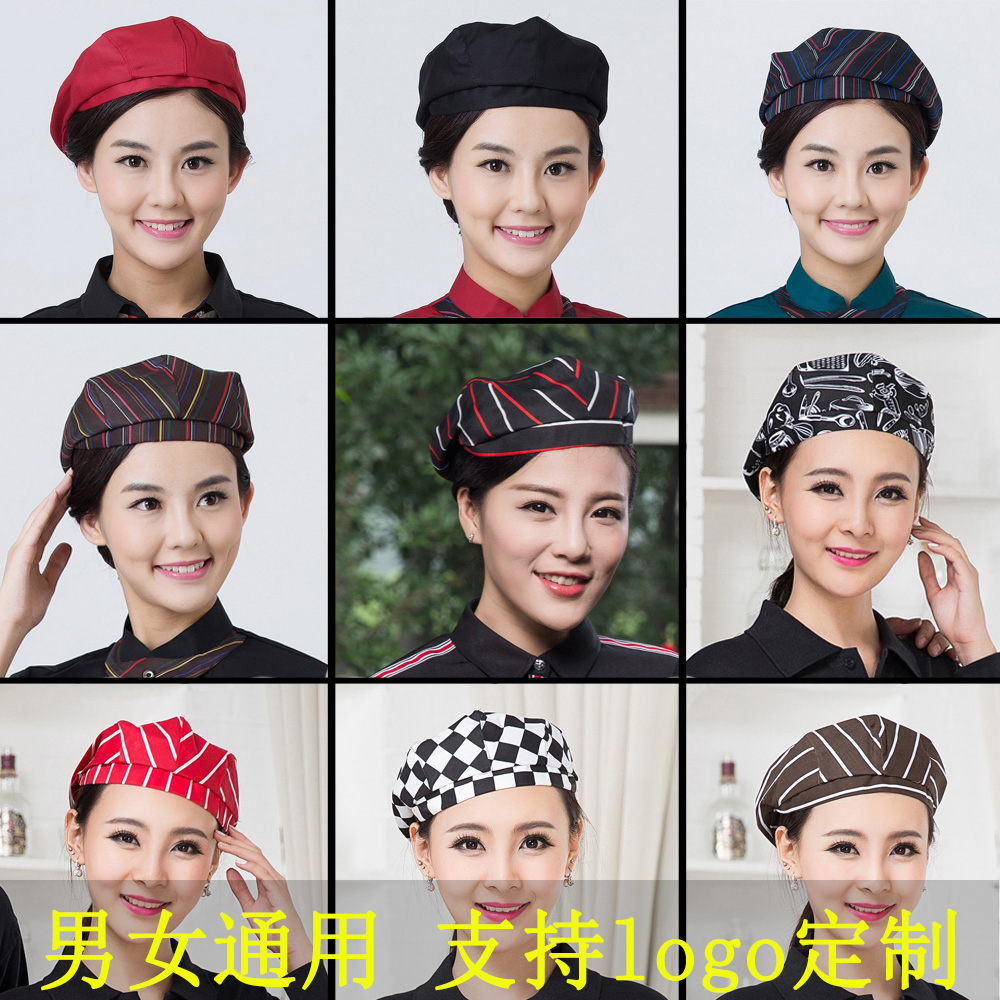 酒店厨师贝雷帽男女通用快餐厅火锅店服务员餐饮厨房工作帽子定制热门设计联盟服务商