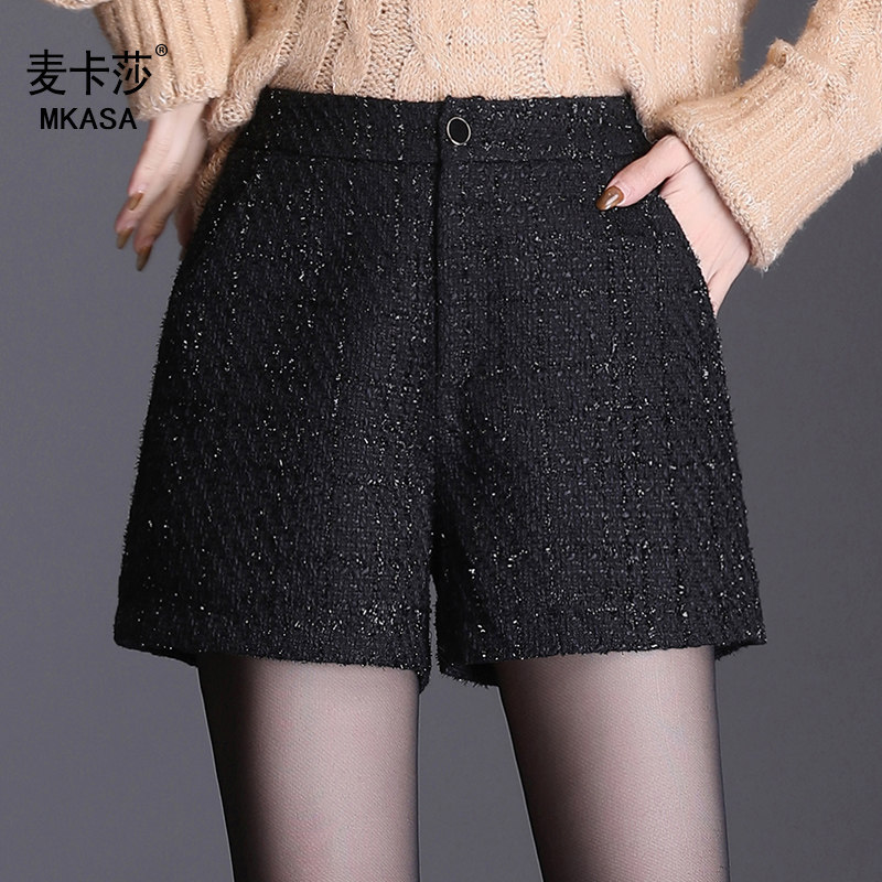 小香风毛呢短裤女秋冬新款2021款百搭格子时尚阔腿短裤外穿靴裤热门设计联盟服务商