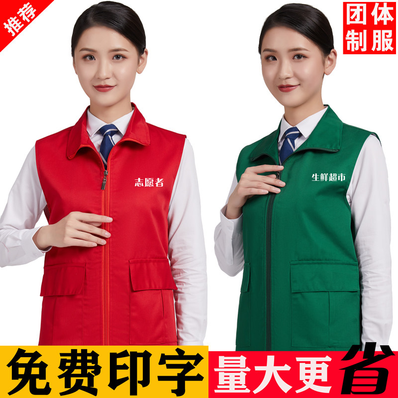 党员志愿者义工宣传活动工装绿色生鲜超市工作服红马甲定制印logo热门设计联盟服务商