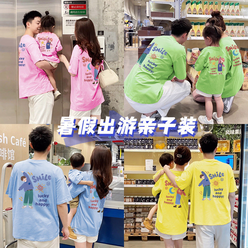 2022新款卡通亲子装短袖夏装一家三四口t恤母子母女装炸街半袖潮热门设计联盟服务商
