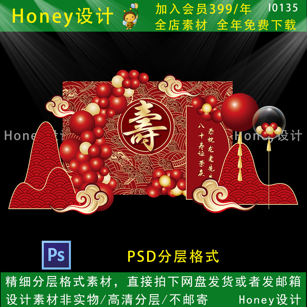 寿宴效果图设计KT板背景高清psd素材红金简约风设计素材热门设计联盟服务商
