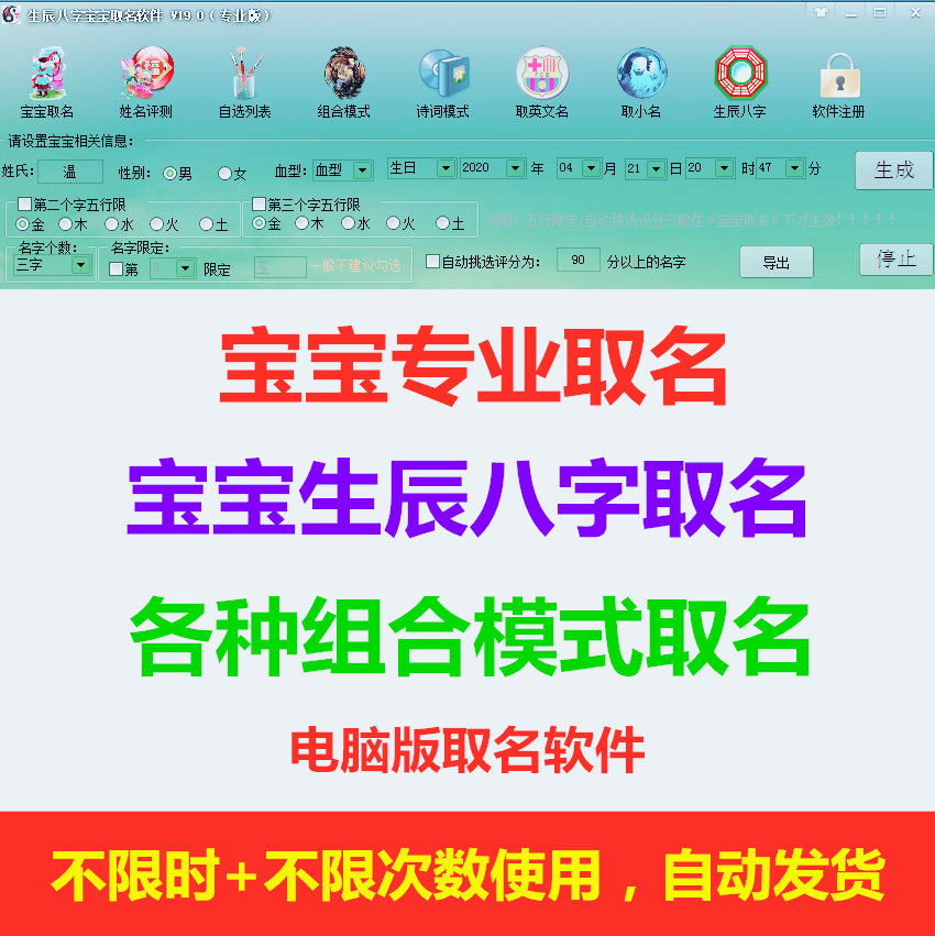 宝宝取名软件新生儿起名软件正版大师专业电脑取名字生辰八字起名热门设计联盟服务商