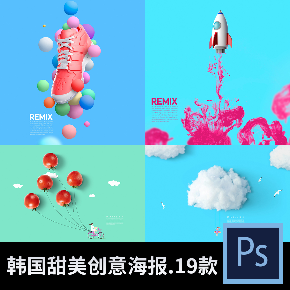 韩国甜美创意海报 气球火烟水果合成美工平面设计素材psd源文件热门设计联盟服务商